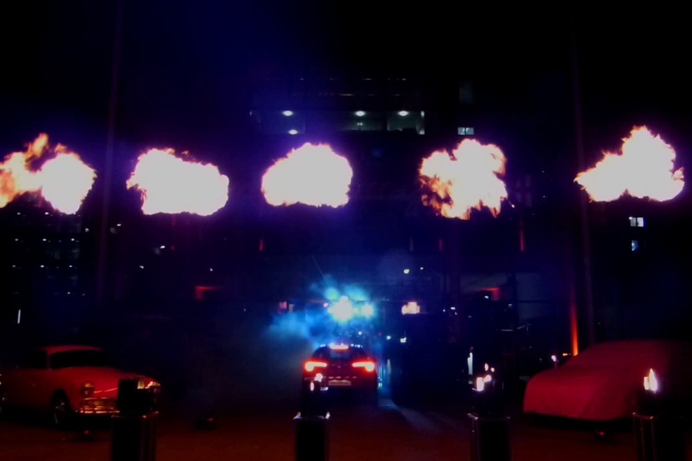 Mit speziellen Effektgeräten werden punktgenaue Flammensäulen und Feuerbälle im Takt der Musik erzeugt.