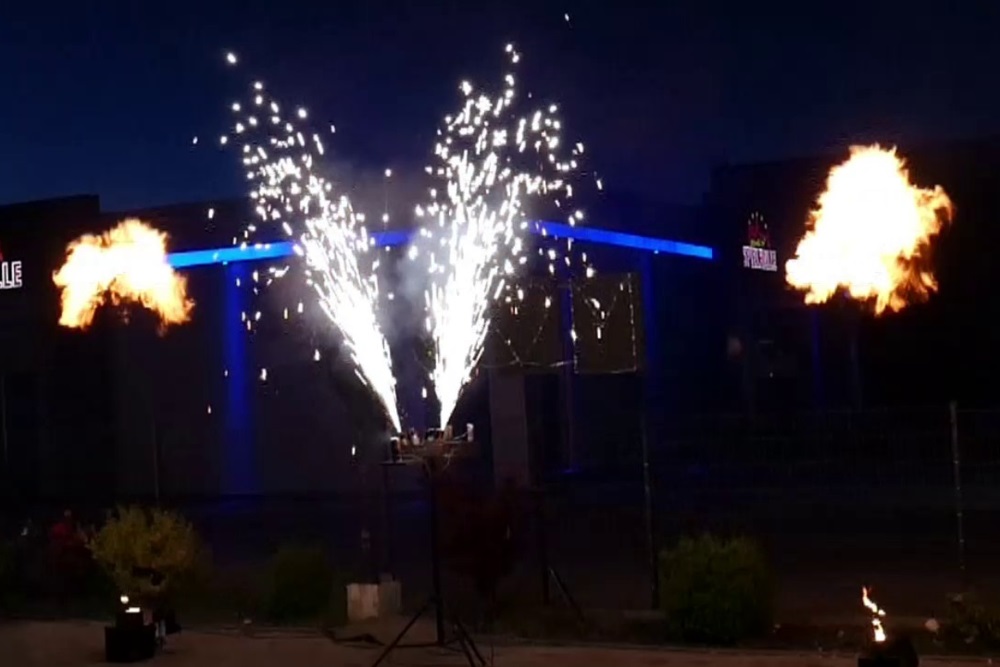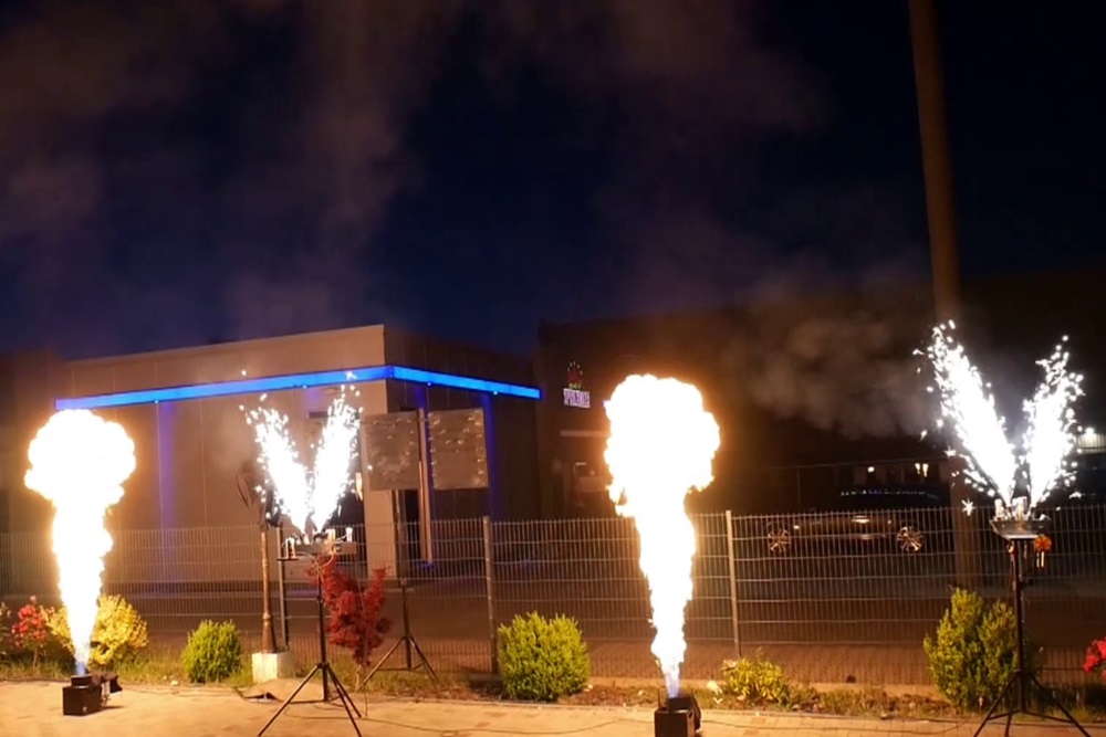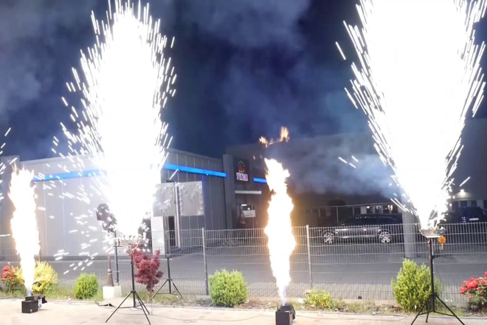 Da an der Location kein Höhenfeuerwerk möglich war, ist die Show als sogenanntes Nahbereichsfeuerwerk konzipiert. Hierfür werden nur ganz geringe Sicherheitsabstände benötigt, außerdem entsteht kein Lärm und Schmutz. Zum Einsatz kommen sprühende Effekte wie Silbervulkane und Goldfontänen, Sonnenräder, genau abgestimmt auf die Wunschmusik des Kunden.